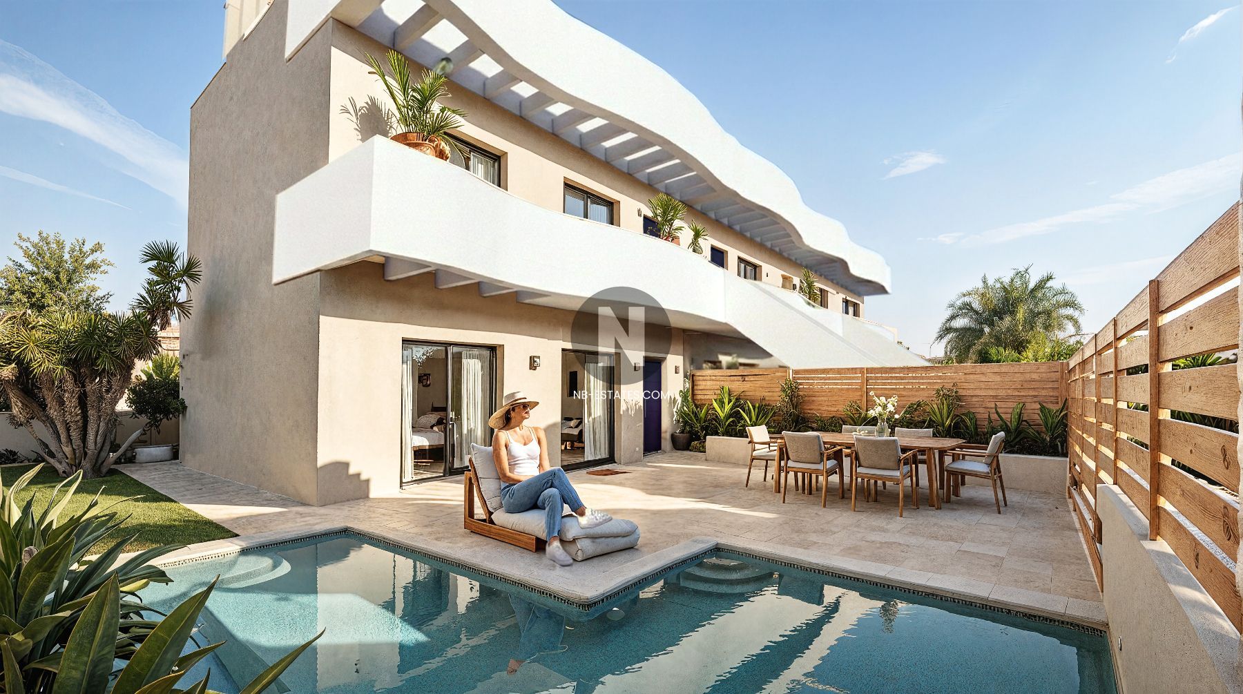 In Pilar de la Horadada an der südlichen Costa Blanca befinden sich diese modernen Neubau-Bungalows mit durchdachter Raumaufteilung und zeitgemäßer Ausstattung. Die Immobilien verfügen über 3 Schlafzimmer und 2 Badezimmer und sind als Erdgeschosswohnungen mit Garten oder als Obergeschosswohnungen mit Solarium erhältlich. Jede Einheit bietet einen privaten Außenbereich und einen eigenen Pool.