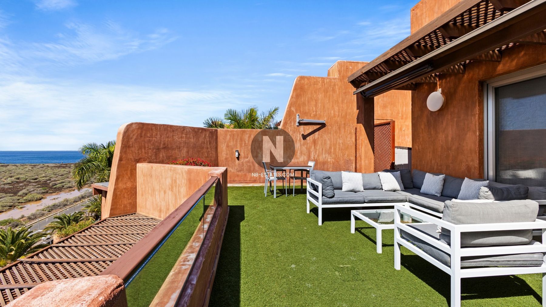 For sale in Palm-Mar, Tenerife: modern duplex penthouse with 2 bedrooms, 2 bathrooms and a separate guest toilet, 101 m² of living space, a 22.52 m² terrace and a private solarium of 59.78 m².