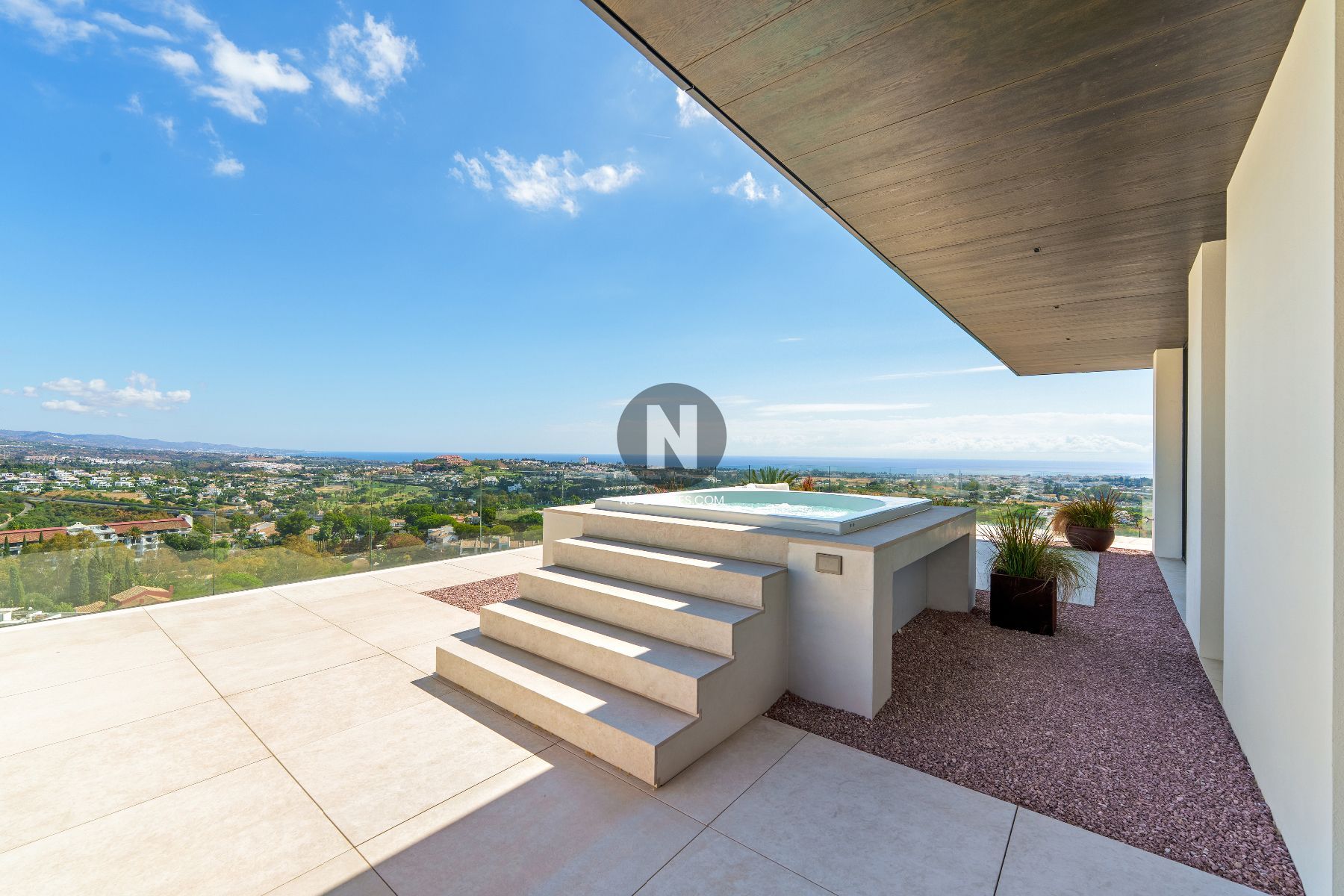 Situated in the exclusive gated community of El Herrojo Alto in Benahavís, this exceptional newly built villa offers a unique combination of contemporary architecture, space, and breathtaking panoramic views. Positioned on an elevated plot, the property enjoys sweeping vistas of the coastline and surrounding mountains, creating a peaceful and private setting on the Costa del Sol.