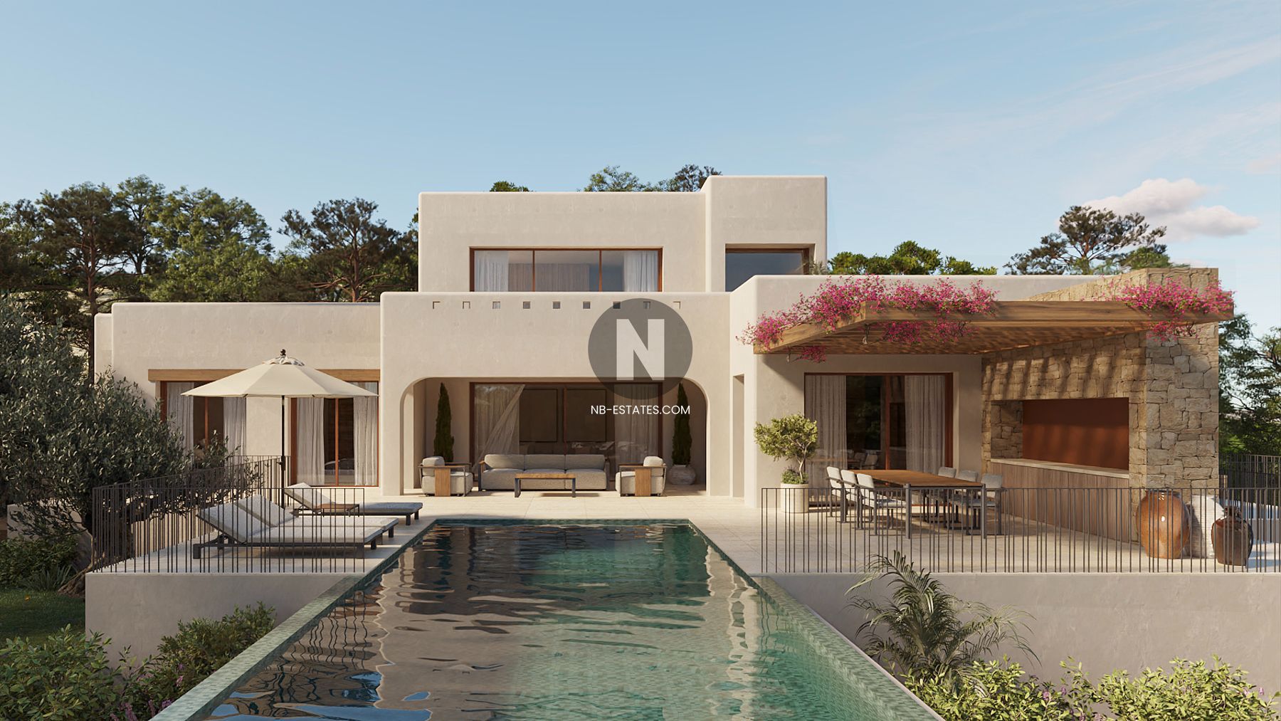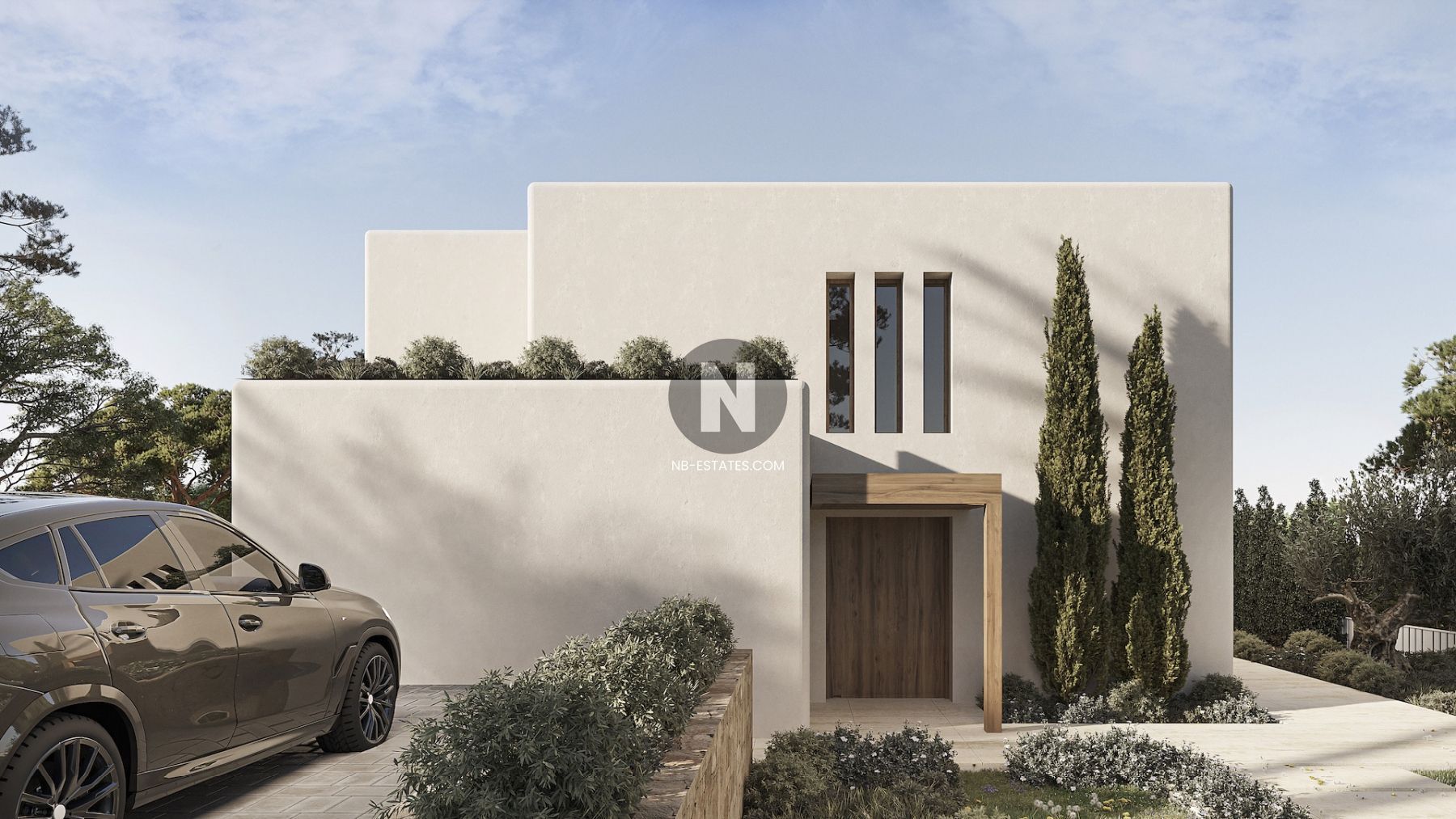 De Benissa se ubica este proyecto de construcción de alta calidad, consistente en una villa independiente situada en una amplia parcela de 1.046 m². La vivienda se encuentra en una zona privilegiada del norte de la Costa Blanca, una región conocida por su belleza natural y clima favorable. El diseño combina una fachada blanca minimalista con grandes ventanales de vidrio, creando una conexión directa entre los espacios interiores y el jardín circundante.