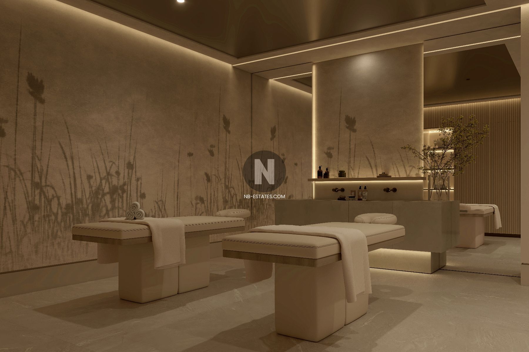 La résidence offre des installations complètes dédiées au bien-être, incluant un spa, une piscine intérieure chauffée, une salle de sport et des espaces de soins. Une piscine sur le toit et un club privé complètent l’ensemble.