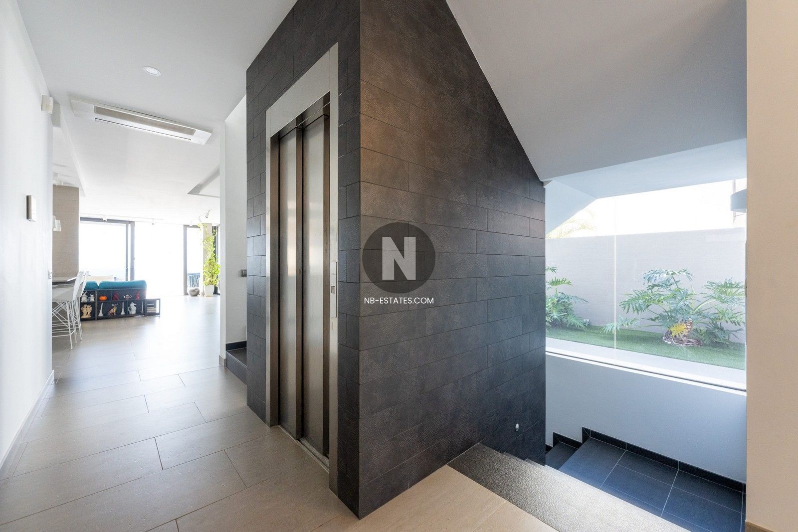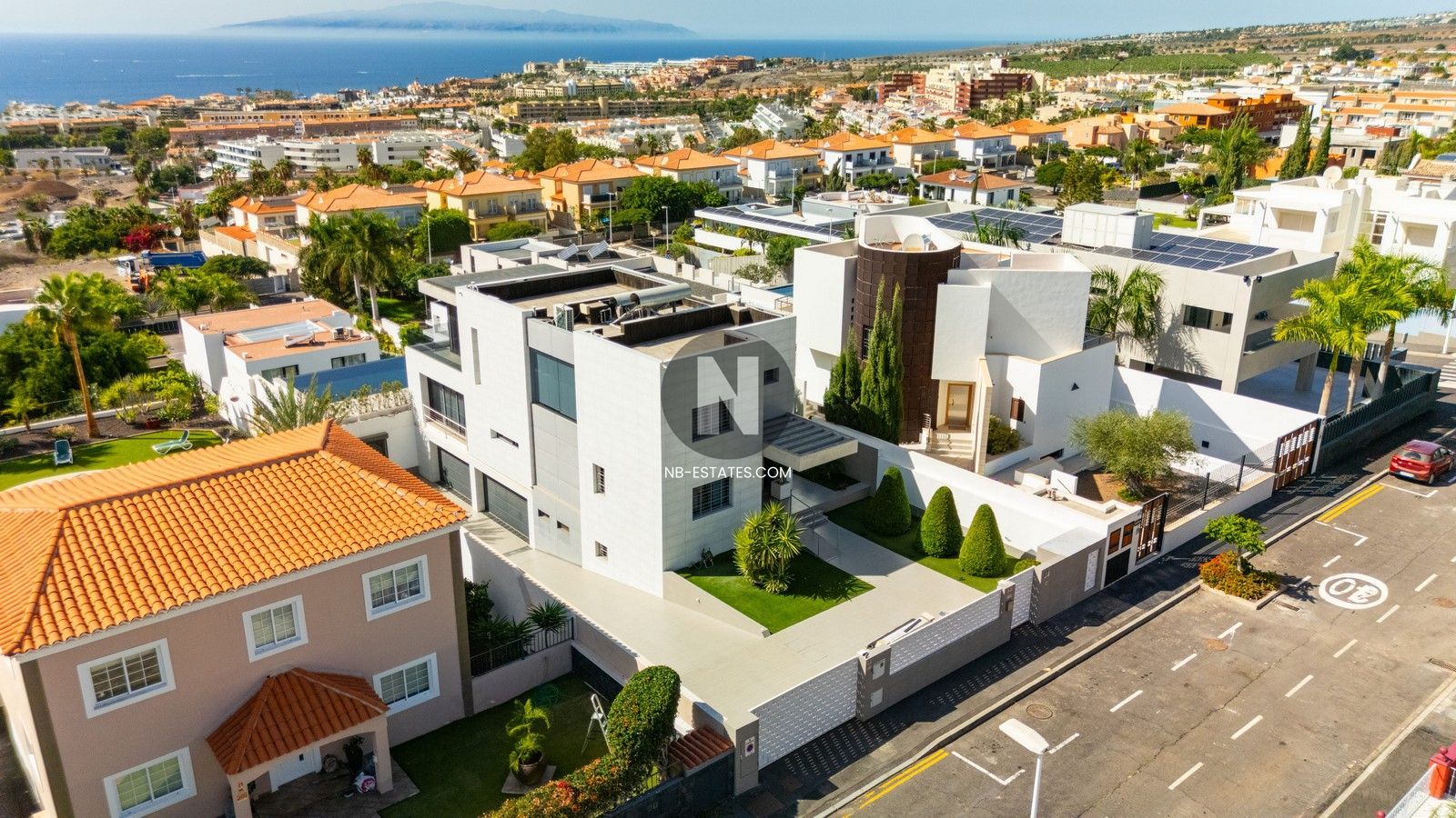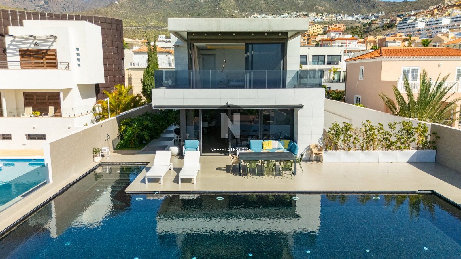 Deze moderne villa met drie verdiepingen bevindt zich in de residentiële wijk El Madroñal in Costa Adeje.