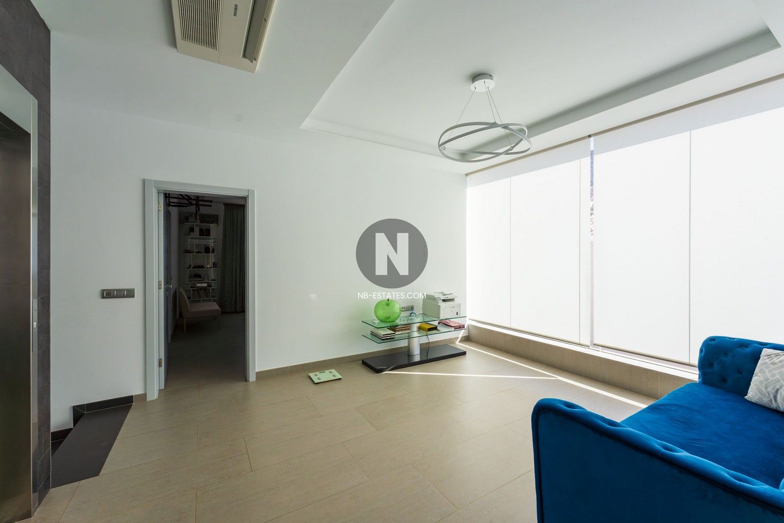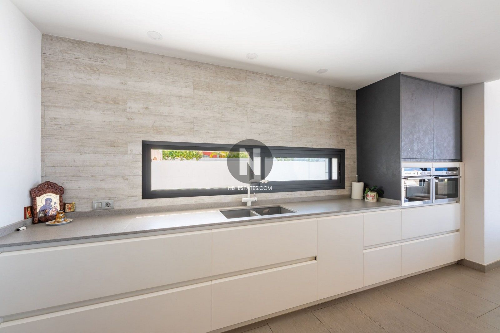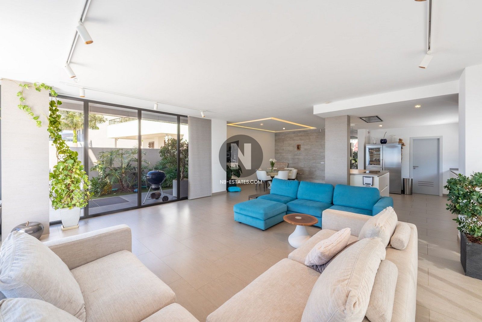 Deze moderne villa met drie verdiepingen bevindt zich in de residentiële wijk El Madroñal in Costa Adeje.