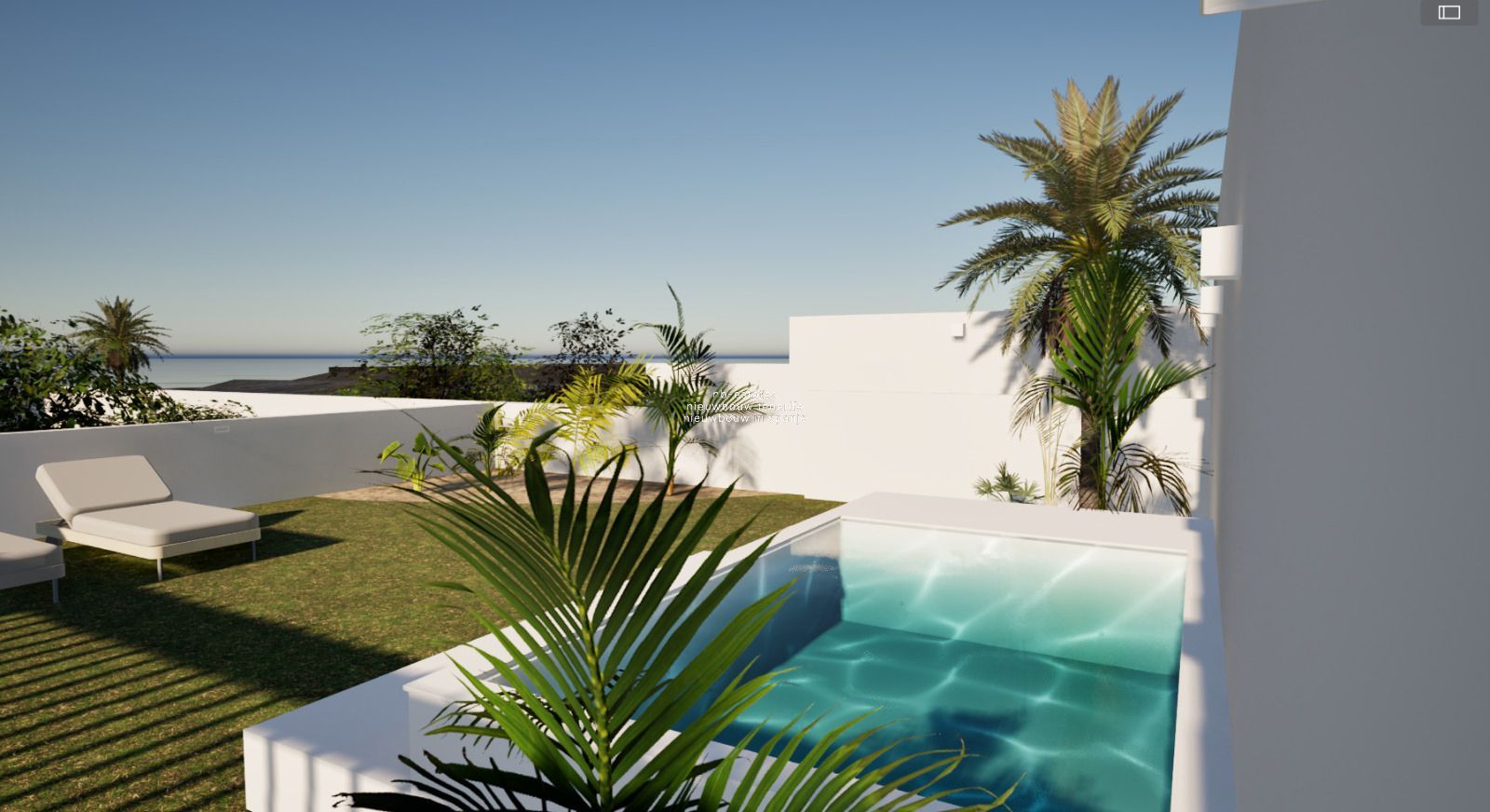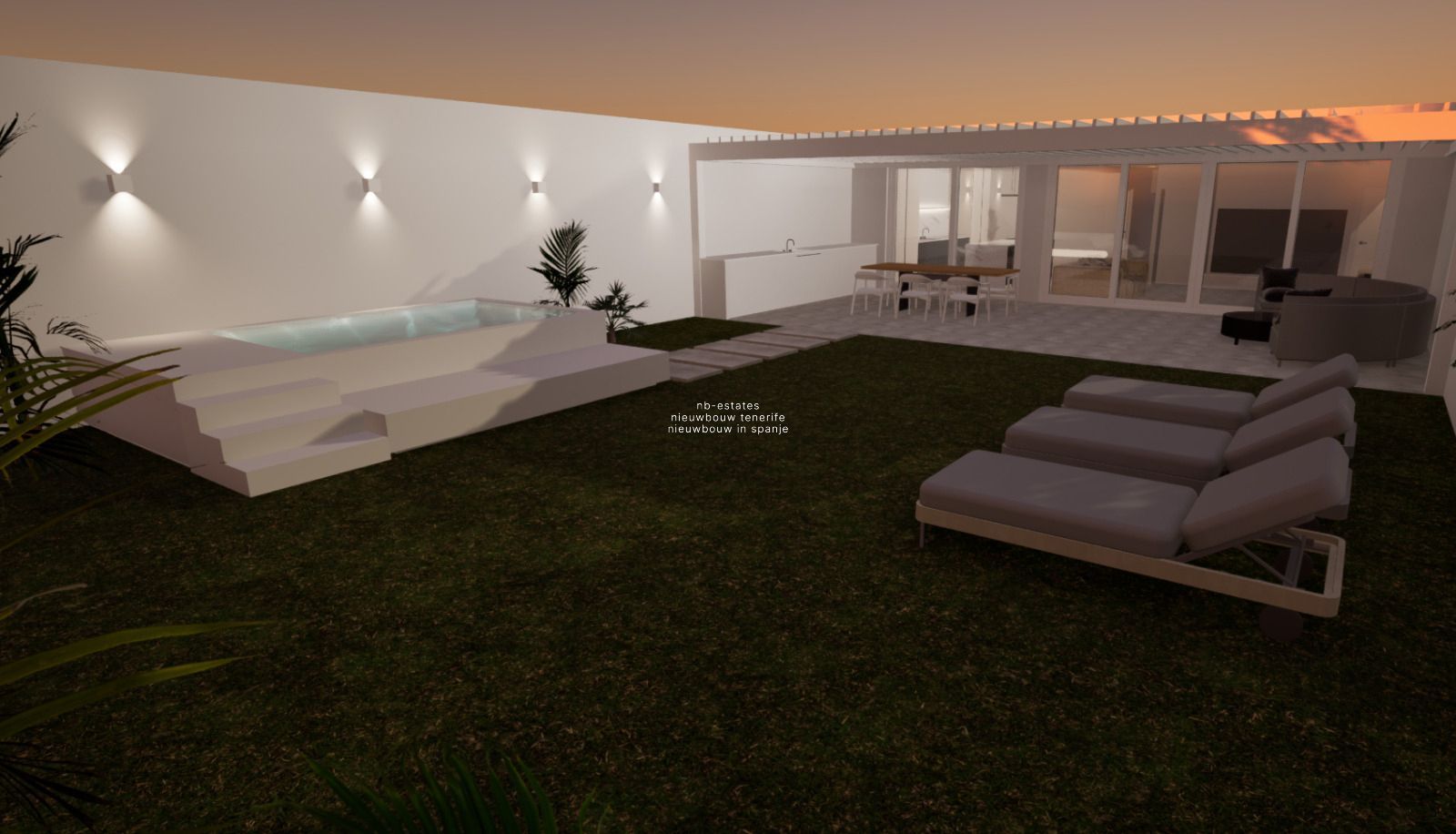 Daarnaast beschikt de woning over mooie, praktische en ruime buitenruimtes en zal ze voorzien worden van een privaat zwembad i.p.v. een jacuzzi (zoals getoond op de renders).