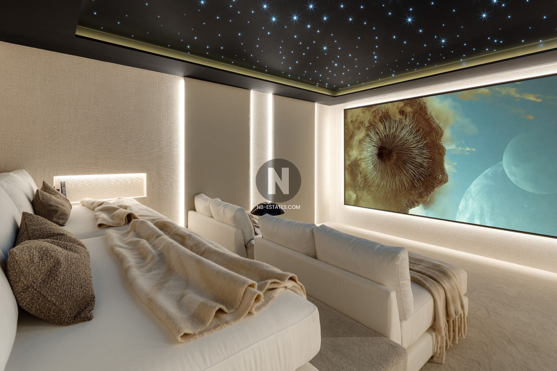 Daarnaast biedt de woning uitgebreide voorzieningen zoals een privébioscoop, wijnkelder, fitnessruimte en spa. Buiten vindt u diverse loungezones, een verzonken zithoek met vuurplaats en meerdere terrassen voor ontspanning en entertainment.
