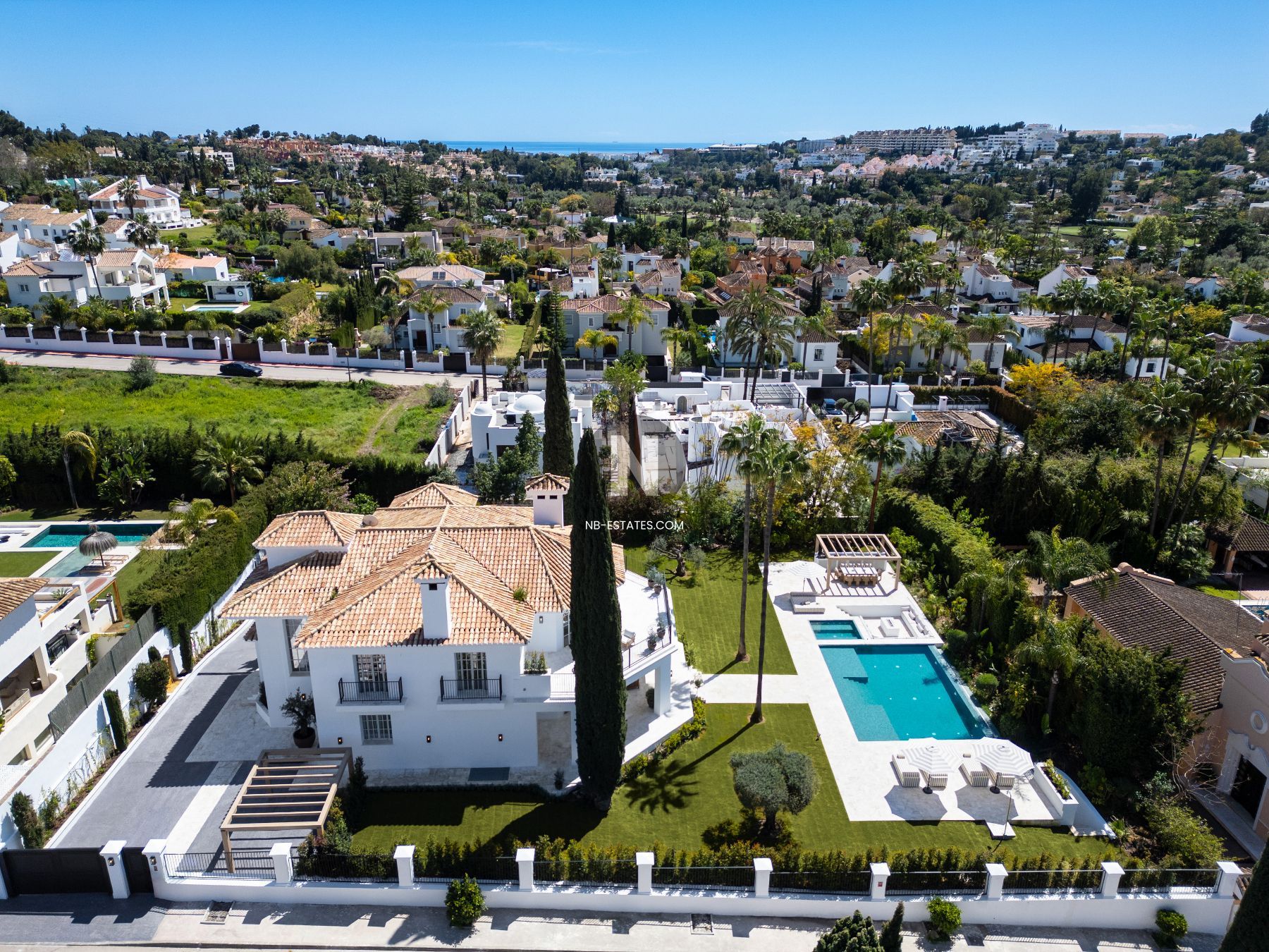 De villa ligt in Nueva Andalucía, een van de meest gewilde woonwijken van Marbella. Dankzij de centrale ligging zijn stranden, golfbanen en het centrum van Marbella snel bereikbaar. De luchthaven van Málaga ligt op ongeveer 45 minuten rijden.