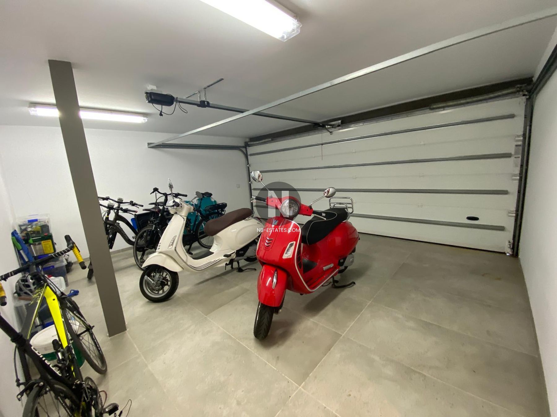 De villa is verdeeld over twee niveaus. Op de benedenverdieping bevindt zich een dubbele garage met directe toegang tot de woning, een berging, een slaapkamer, een badkamer en een volledig uitgeruste wasruimte. De bovenverdieping omvat de hoofdwoning met een inkomhal, open keuken, leefruimte en eetkamer, aangevuld met drie ruime slaapkamers, waarvan één met en-suite badkamer, en een extra badkamer en gastentoilet.